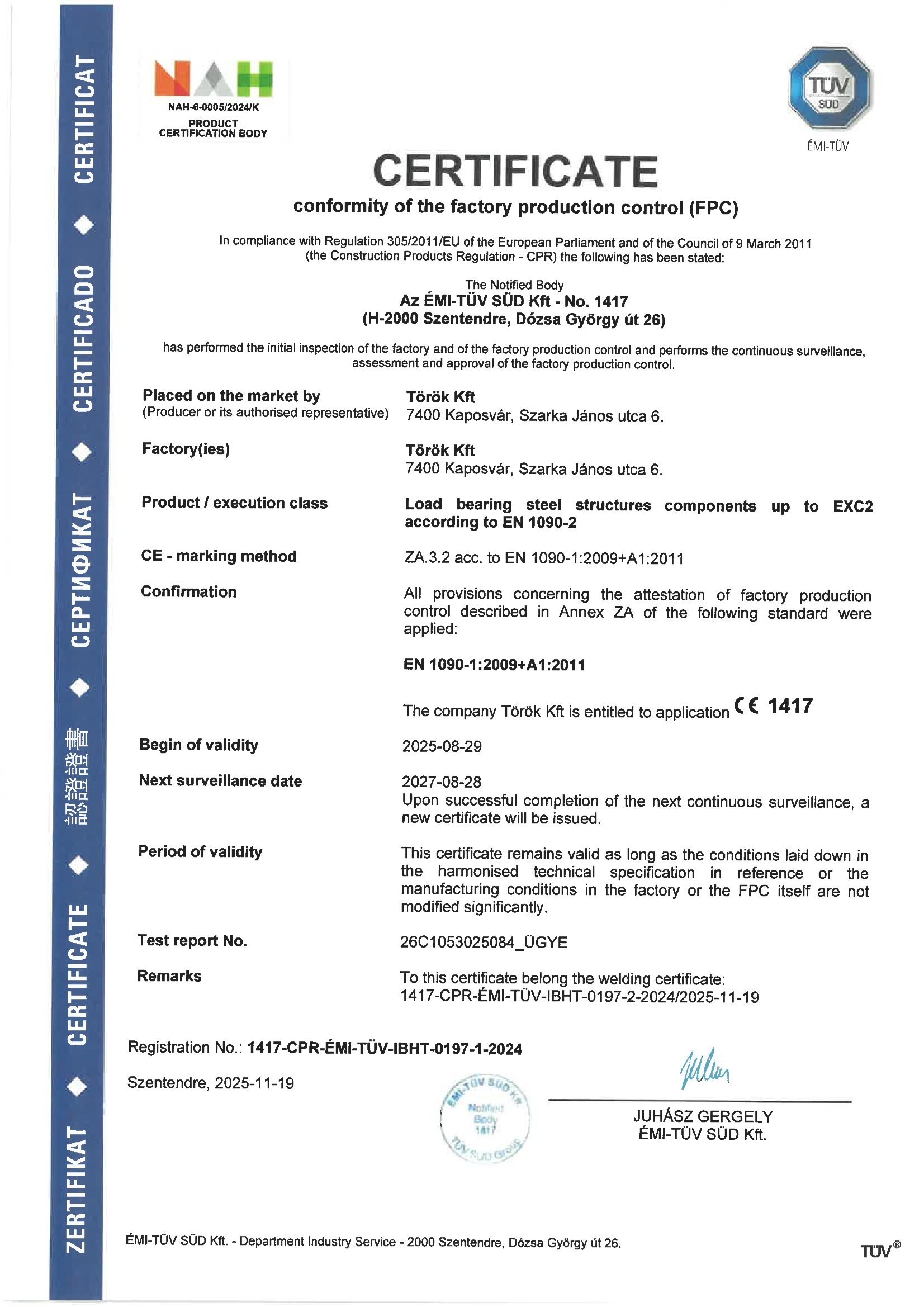 EN 1090-1:2009+A1:2011 conformity of the factory production control (FPC)