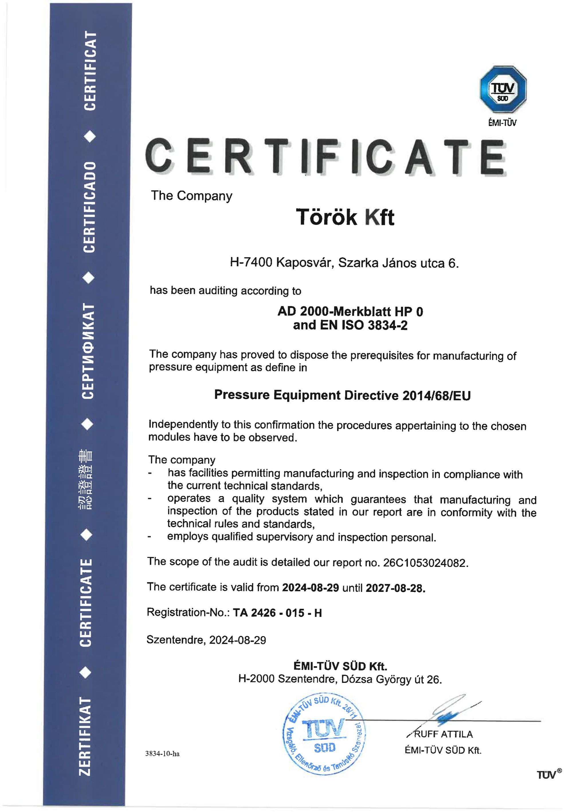EN ISO 3834-2 - Pressure Equipment Directive 2014/68/EU